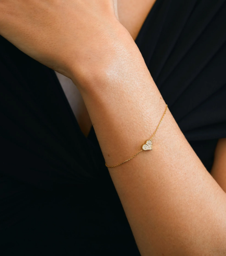 Браслет на застібці серденько з діамантами жовте золото VDC 32-D