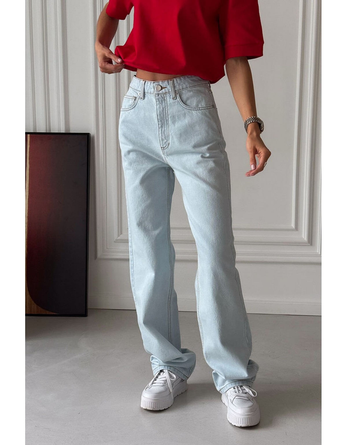 Брюки Bazhane релакс прямого крою молочні в смужку