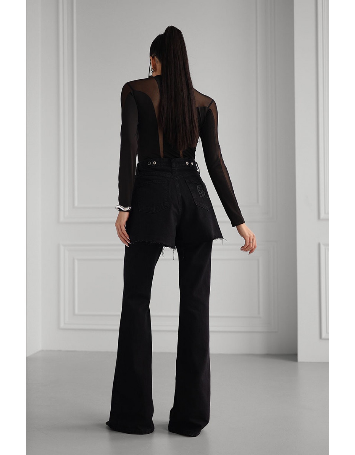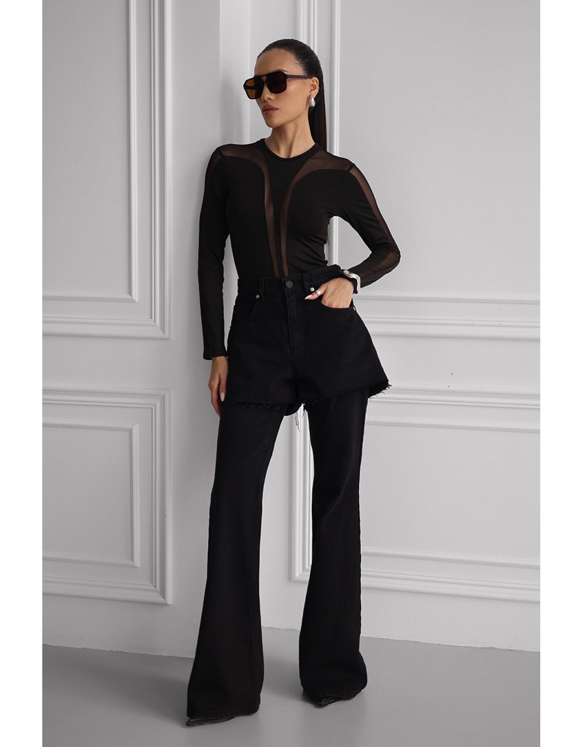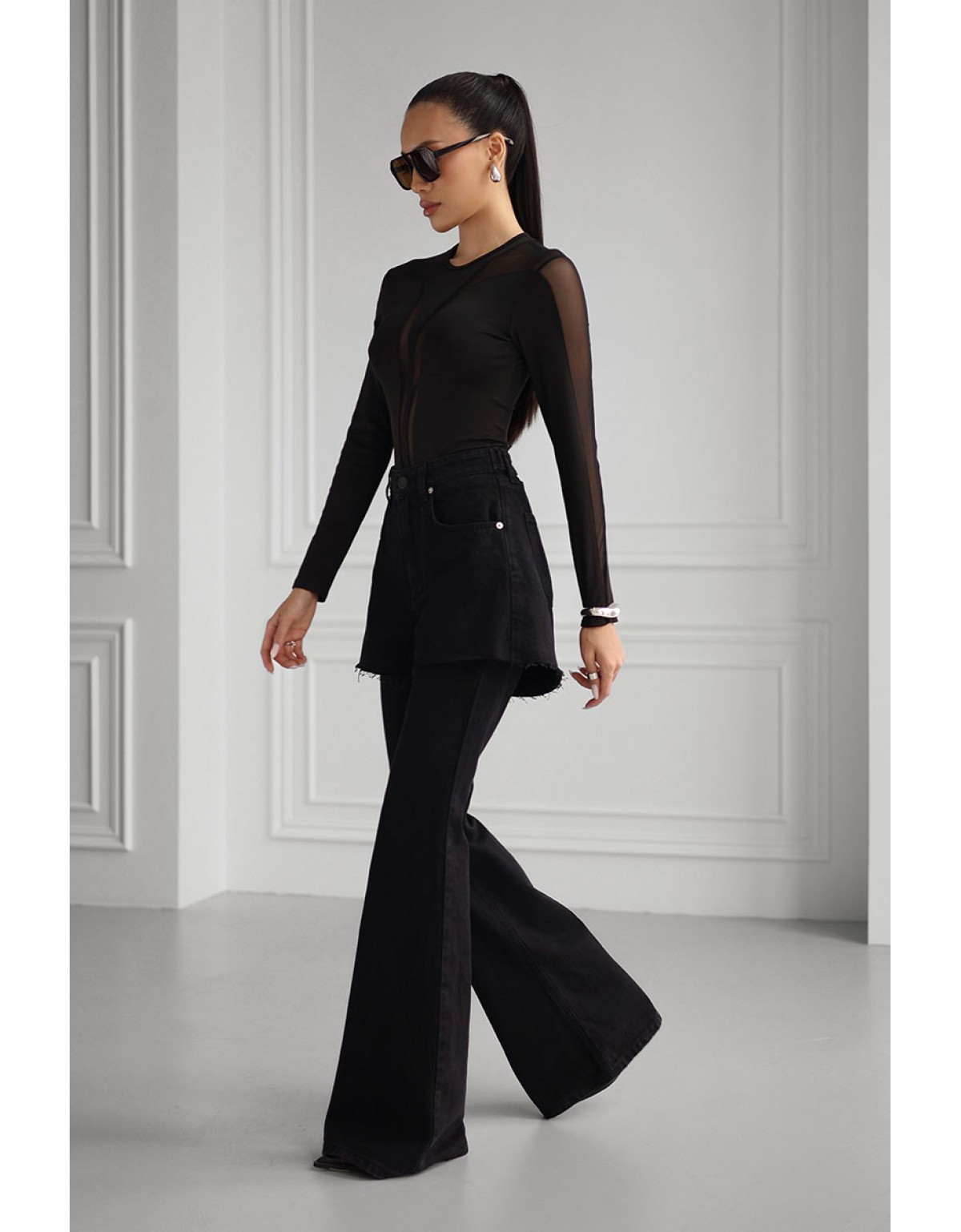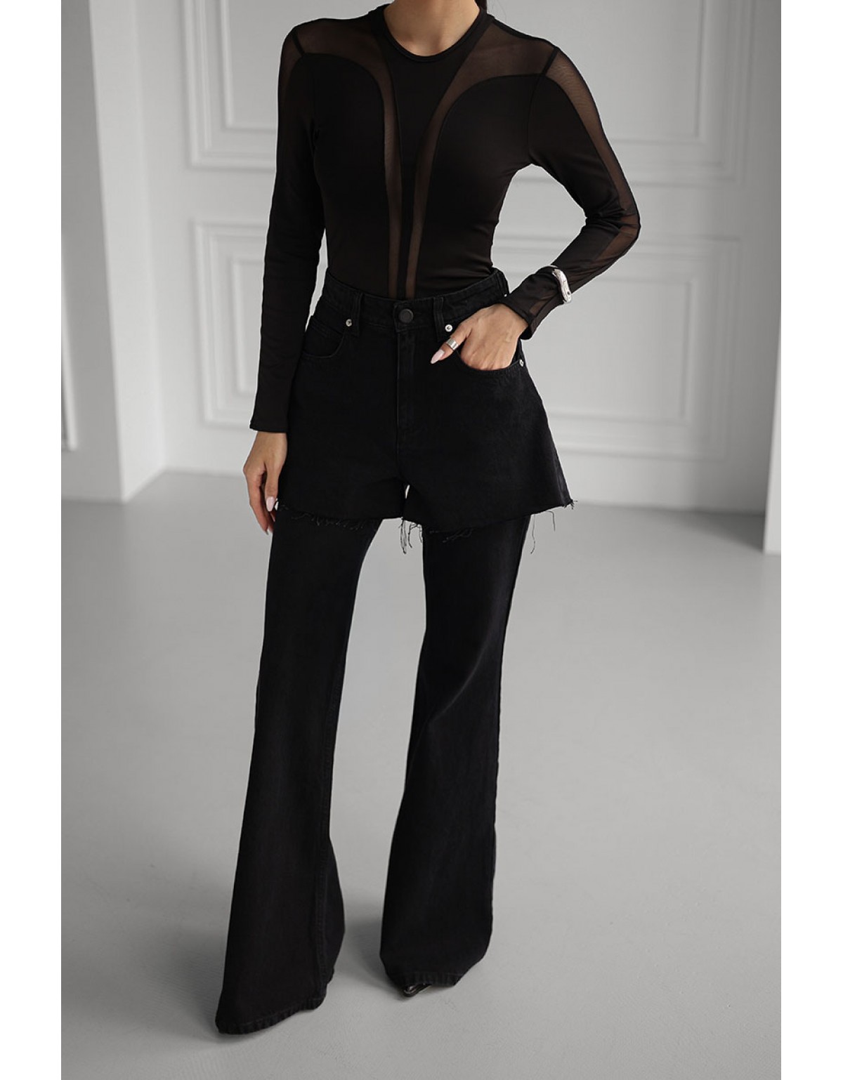 Лонгслів Bazhane оверсайз прозорий чорний