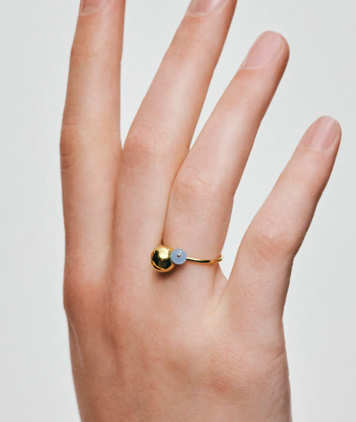 Каблучка з золотою кулькою 8мм і аквамарином 5мм жовте золото (17)