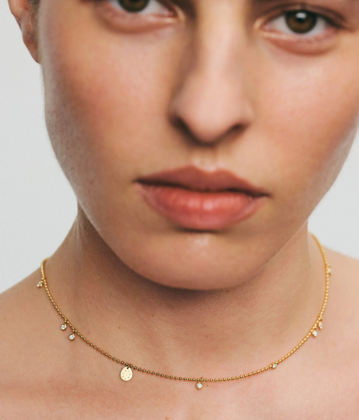 Кольє Eternal ланцюг-кульки з діамантами і клюшкою жовте золото (38) EC 02-D