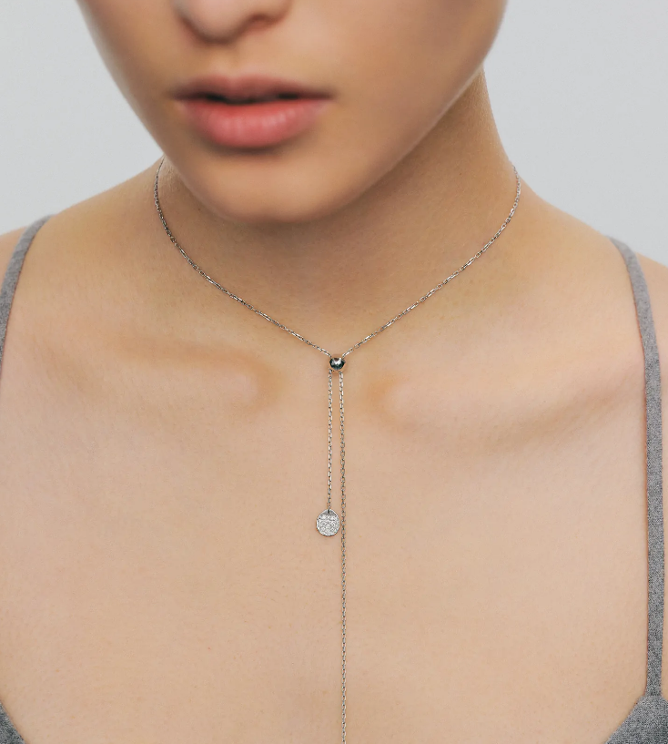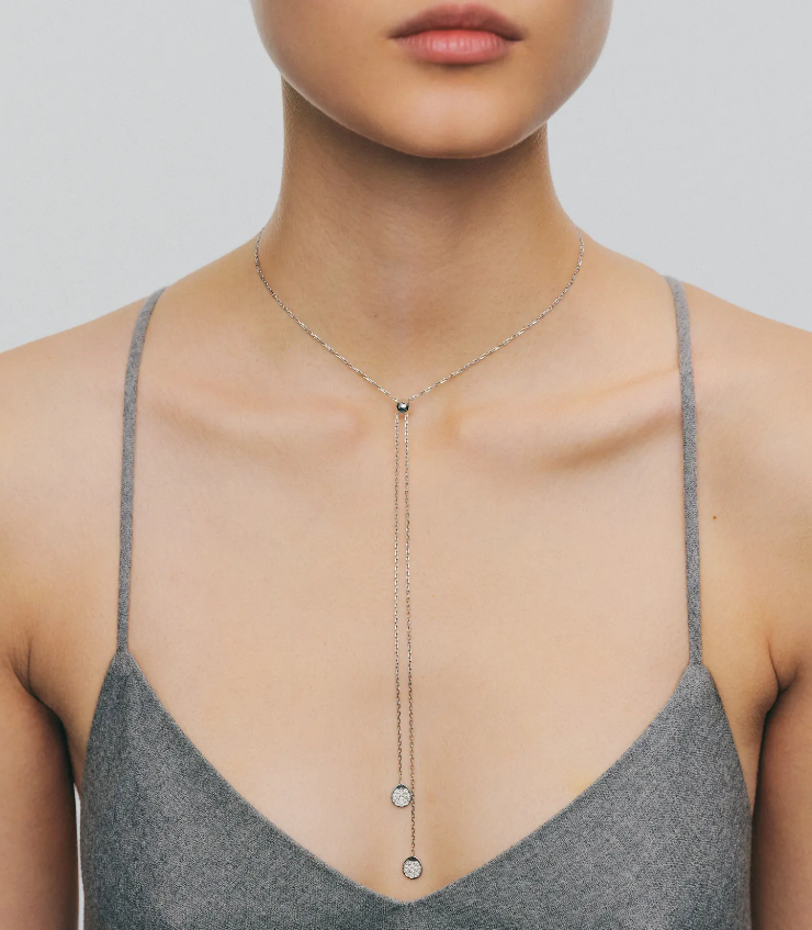 Кольє-краватка клюшки з діамантами біле золото DR 25-D