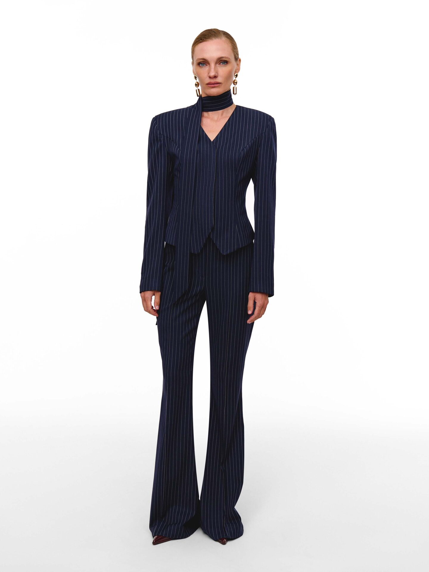 Брюки Bazhane релакс прямого крою молочні в смужку