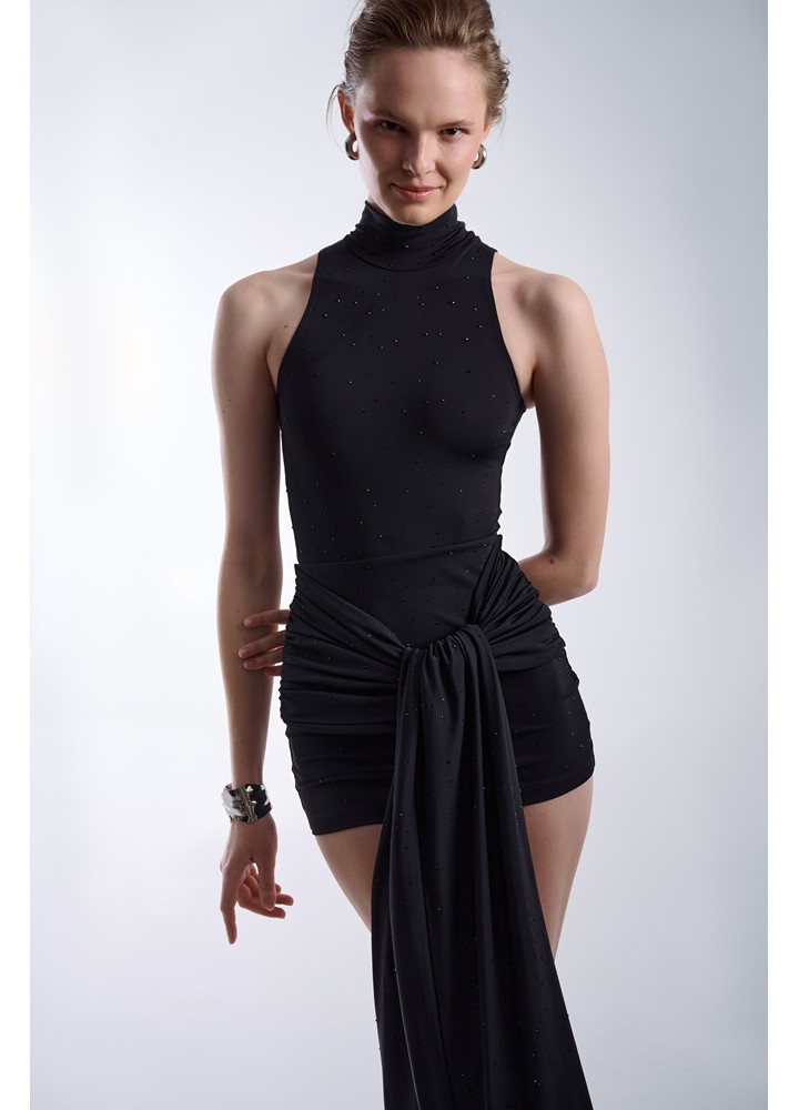 Спідниця Bazhane міді атласна на середній посадці чорний