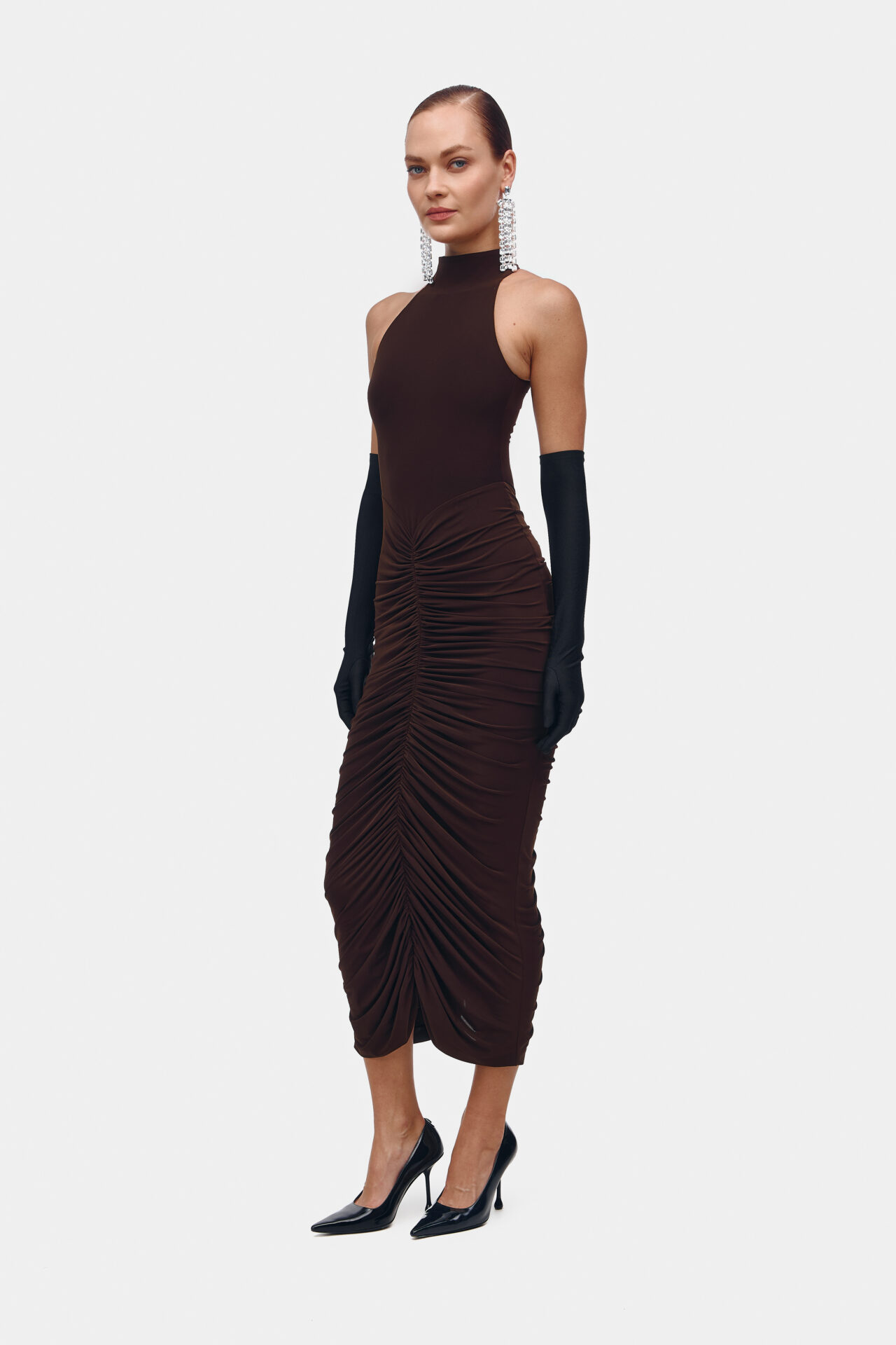 Сукня Bazhane міді чорна з вирізом та мереживом