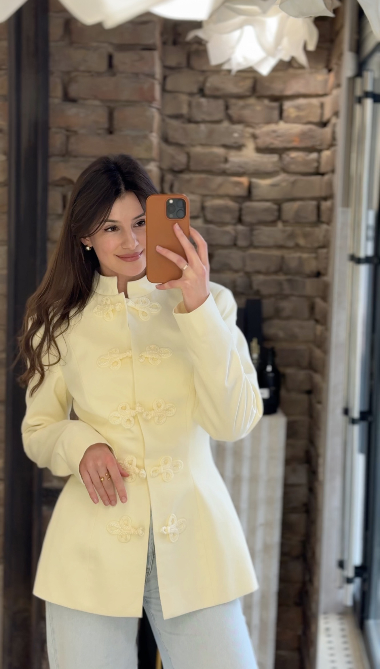 Жакет Bazhane двобортний оверсайз з підплічниками молочний льон